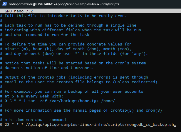 sudo chmod +x /Apliqo/scripts/mongodb_cs_backup.sh - you can now execute the script manually:
