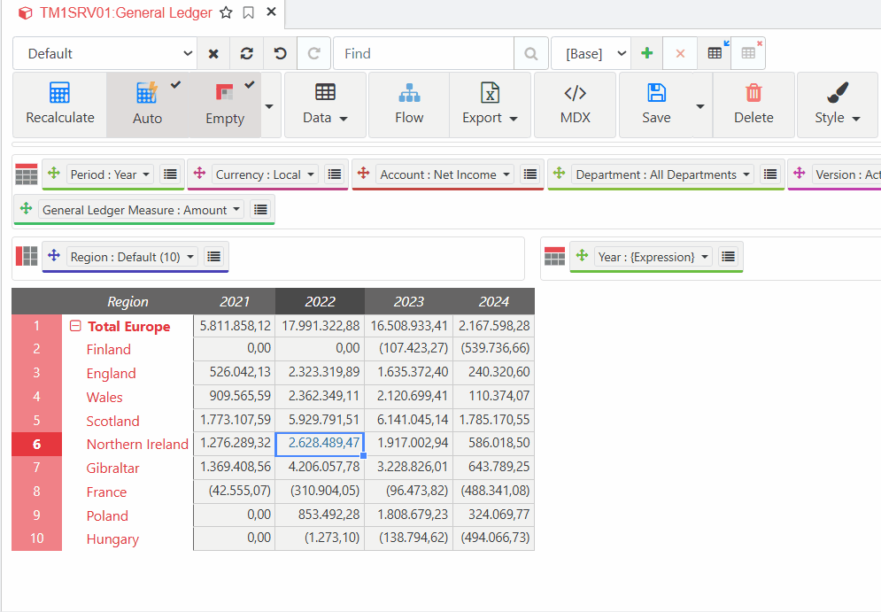 If we, in suppress zero mode, do a rollup (or an aggregate) of a set of rows populated with data, all the rows disappear… We need to uncheck the suppress zero options and even thow, it doesn’t work very well.
