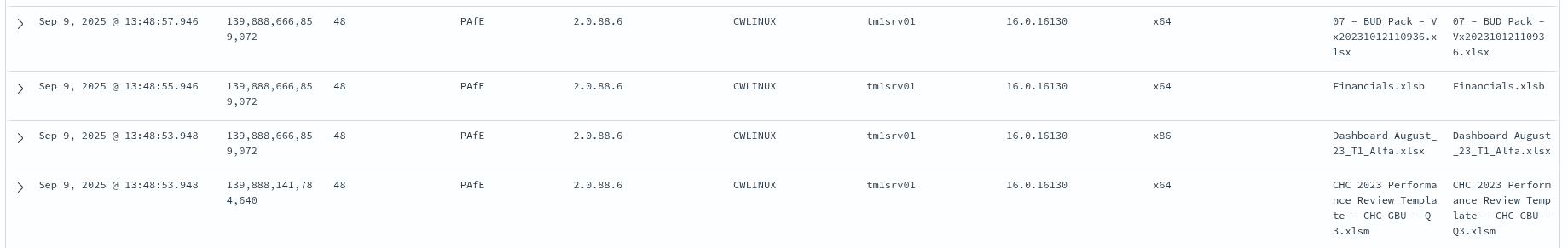 For that I used the custom scripted fields to create: PAfEVersion and WorkbookName (since Excel version is handled by IT and they are alll using the same x64 version).