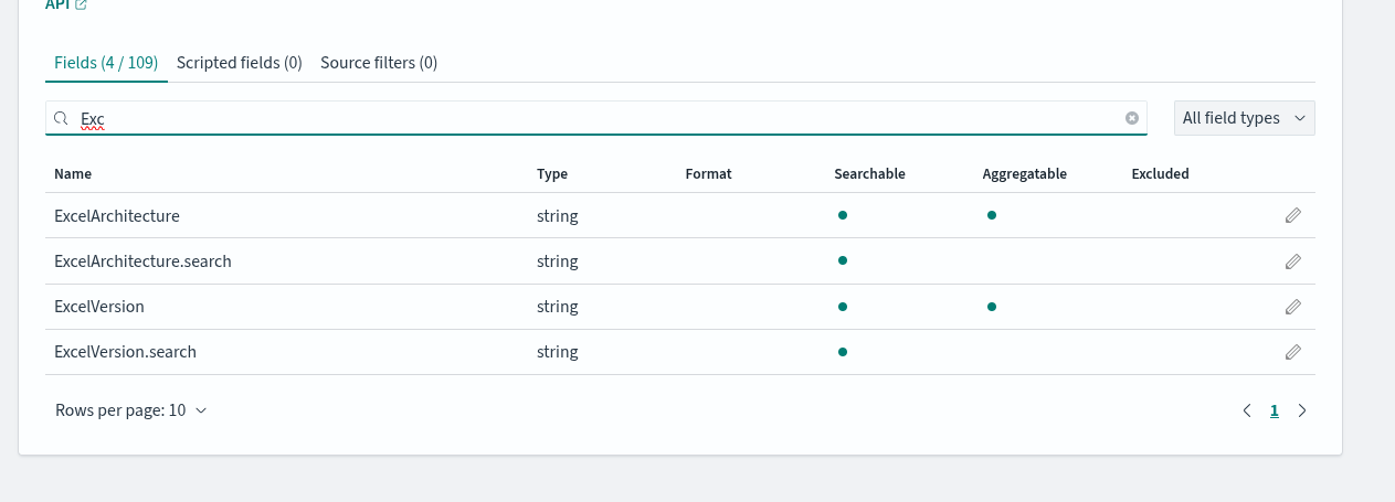 We’ve included these fields in Pulse’s Opensearch, but it also tracks any product, the version and also the Version, architecture of Excel. Added to the later, you will also see the Workbook and Worksheet.