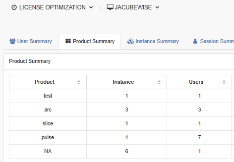 License Optimisation Report already has product summary,