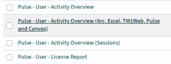 pulse-tm1-session-history index is already used by Pulse to generate the following report